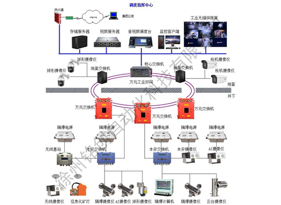 視頻監(jiān)控及大屏顯示系統(tǒng)可以實(shí)現(xiàn)地面監(jiān)控人員直接對(duì)井下情況進(jìn)行實(shí)時(shí)監(jiān)控,能直觀的監(jiān)視和記錄井下工作現(xiàn)場(chǎng)的安全生產(chǎn)情況,能及時(shí)發(fā)現(xiàn)事故苗子,防患于未然,也能為事后分析事故提供有關(guān)的第一手圖像資料。系統(tǒng)根據(jù)實(shí)際井下應(yīng)用情況,使用多種傳輸方式包括光纖、網(wǎng)線、雙絞線、WiFi/4G/微波無(wú)線等;多種產(chǎn)品類型包括隔爆攝像儀、本安攝像儀、AI攝像儀、執(zhí)法儀、PDA、信息化礦燈等;多種供電方式來(lái)選擇相應(yīng)的監(jiān)控產(chǎn)品。基于“云、邊、端”結(jié)構(gòu)的煤礦大腦,可實(shí)現(xiàn)人工智能監(jiān)控。配合多種形式存儲(chǔ)服務(wù)器、流媒體服務(wù)器、視頻解碼及多途徑顯示方式形成完整的煤礦視頻監(jiān)控系統(tǒng)。