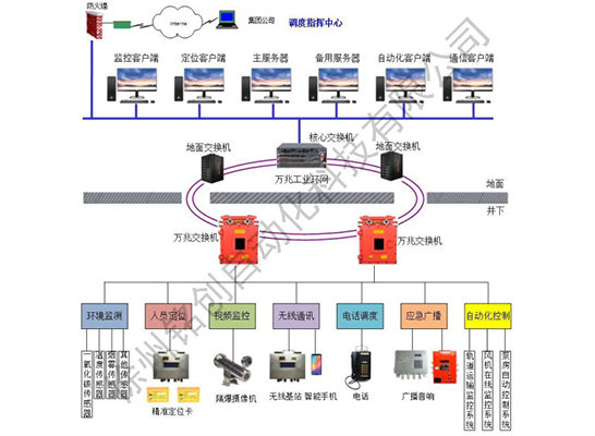 金屬非金屬礦山綜合監(jiān)控管理系統(tǒng)是針對(duì)我國(guó)非煤礦山現(xiàn)狀而開發(fā)的一套軟、硬件結(jié)合的全礦井生產(chǎn)綜合監(jiān)控系統(tǒng)??蓪?duì)礦山井下環(huán)境、人員定位、電話調(diào)度、廣播通訊、無(wú)線通訊(WIFI4G)、視頻監(jiān)控、機(jī)車運(yùn)輸監(jiān)控、風(fēng)機(jī)在線監(jiān)測(cè)等參數(shù)進(jìn)行綜合監(jiān)控管理。井下通過(guò)冗余工業(yè)以太環(huán)網(wǎng),利用多功能監(jiān)測(cè)基站,結(jié)合總線等傳輸方式將井下各種子監(jiān)控系統(tǒng)合理地融合為一體,在方便管理維護(hù)的基礎(chǔ)上大大節(jié)約了投資成本。